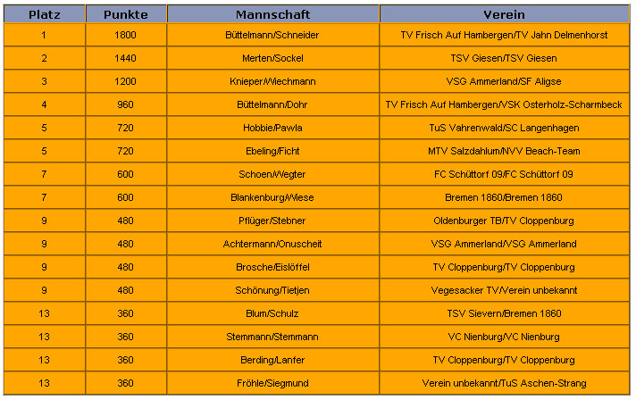 Eine gute Vorbereitung auf den Saison-Höhepunkt sieht wahrlich anders aus, als das was der Onkel und Tobel in diesem Jahr hatten. Nicht eine einzige Trainingseinmheit absolvierten wir im gesamten August - geschuldet durch das Mistwetter und/oder meine Fußballverpflichtungen beim FC Worpswede. Dazu kam lediglich das "halbe" Turnier in Zeven, bei dem wir ja auch nicht richtig durchstarten konnten. So kam es, dass wir relativ locker, man könnte auch sagen, bereits mit einer gewissen Winterpausenstimmung nach Hannover reisten. Und das war ebenso doof wie ärgerlich. Denn selten (besser gesagt, wohl noch nie!) war das große niedersächsische Finale derart schwach besetzt, wie in diesem Jahr. Mit Erdmann/Windscheif, Curin/Penk und Böckermann/Götz waren nur zweieinhalb klassische DVV-Teams am Start. Die Ruhrpott-Fraktion startete zeitgleich bei den WVV-Meisterschaften und so kam es, dass Stefan und ich an Position fünf gesetzt waren und eine vermeintlich leichte Losung hatten. Im ersten Spiel ging es gegen den Onukai und sein Herrchen Lars Achtermann. Leider kam hier genau das zum Tragen, was Stefan bereits vorher angedeutet hatte. Meinem schmächtigen Partner fehlte die Anspannung... Und so kamen wir nicht ein einziges Mal so richtig auf Touren, rannten einem permanenten Rückstand hinterher und verloren am Ende zwar knapp, aber durchaus verdient mit 13:15 und 14:16. Das war die erste Ernüchterung. |