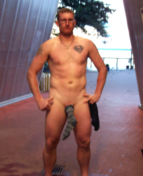 "Flauschi" nur mit einer Unterhose bekleidet in der heimischen