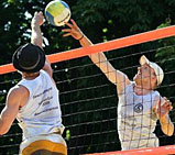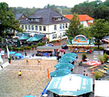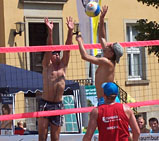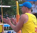 Ja ja, das ist so eine Sache nach einem gewonnen Turnier am schönen Steinhuder Meer ins, naja, sagen wir mal nicht gerade vor Leben überbordende Obernkirchen zu fahren. Im Laufe einer langen Beachsaison kommt irgendwann (meistens Ende Juli Anfang August) der Moment, wo man eigentlich nicht mehr so die ganz große Motivation verspürt, morgens um 6 Uhr aufzustehen. Beim Onkel und mir war das unisono das Top-10-Turnier von Obernkirchen. Dazu hatte natürlich der A-Cup-Sieg vom Wochenende zuvor nicht unwesentlich beigetragen. Dazu die Aussicht auf ein wie immer unter Ausschluss der Öffentlichkeit ausgetragenees Top-10-Turnier im Ortskern von Obernkirchen. Einfach sauschade, dass hier nicht mehr Zuschauer mobilisiert werden können... Und obendrein gibt´s dort immer nur ein Court, was zu extremen Wartezeiten führt. Und Losglück hatten wir dann auch irgendwie nicht wirklich. Wir waren zwar momentan wirklich ganz gut in Fahrt, aber ein Team Gatzke/Polte schlägt man dann irgendwie ja doch nicht mal eben so im Vorbeigehen. Und irgendwie konnte uns selbst die Aussicht auf das "Vervollständigen der Besiegungen" der WM-Vierten-Truppe von 2005 nicht wirklich den letzten Kick geben. Und selbst die Anwesenheit von Atze schröder vermochte uns an diesem Tag nicht zu pushen... |