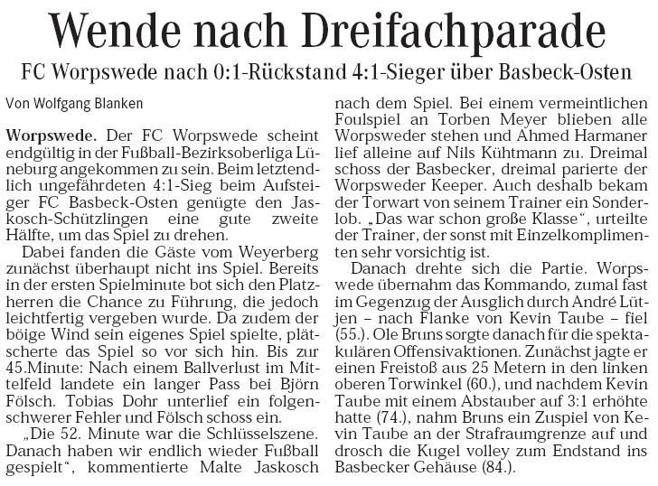4:1 IN BASBECK-OSTEN - ES GEHT WEITER VORAN! |