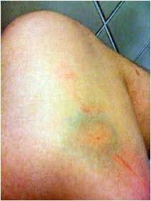 Jetzt geht’s erstmal 1 ½ Wochen ruhig zu. Am Wochenende Spielfrei. Dann kommt der Endspurt. Wir müssen sehen, dass uns die Ruhephase nicht aus der Bahn wirft… Ach ja, und Unser dicker Mittelfeldfelsen klagte gleich am nächsten Tag über unheilbare Schmerzen… Er hat sich wohl verausgabt… und soll angeblich zweimal gegrätscht haben. Hier sein Beweis (siehe Foto oben). Wobei es noch nicht ganz schlüssig ist, ob der Hund nicht nach seiner Nudel geschnappt hat.
